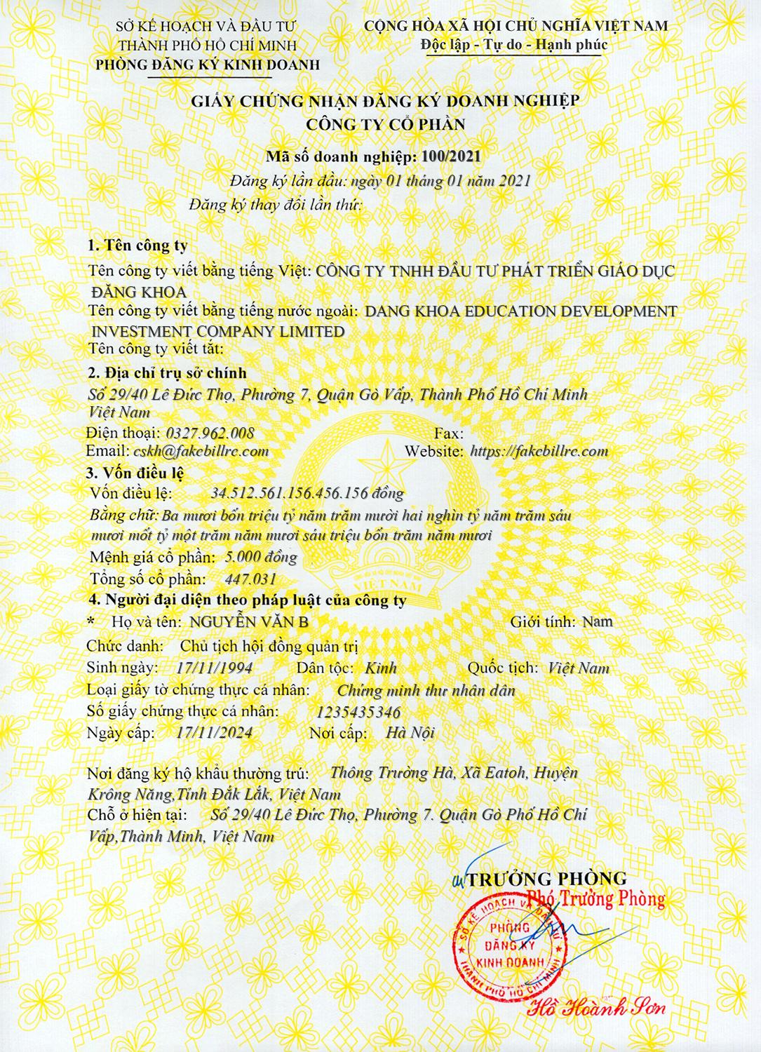 Nhập thông tin tạo Giấy Chứng Nhận Doanh Nghiệp